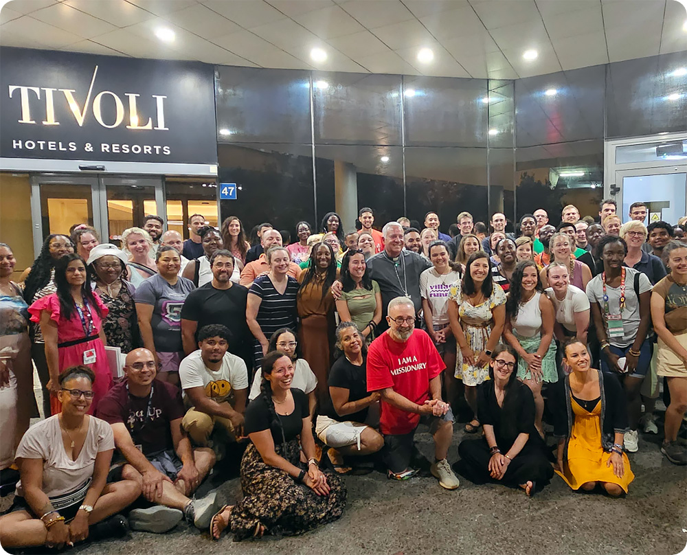 Open Hands: Open hands are a symbol of prayer and openness to receive God’s grace. Hands that are lifted are a common Biblical image of prayer, “I will bless you as long as I live; I will lift up my hands, calling on your name” (Psalm 63:5). The open hands in gesture of prayer are a reminder for young adults that prayer is the foundation of a life of discipleship. As Pope Francis addressed the young people, he said to them: “Hope is nurtured by prayer. Prayer preserves and renews hope. It helps fan the spark of hope into flame.” Open hands are also a symbol of good works, especially done in service to others, as Jesus reminded us: “Whatever you did for one of these least brothers of mine, you did for me” (Matthew 25:40).